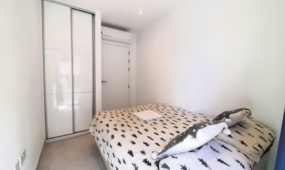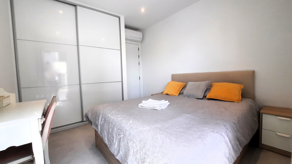 Centrally located at the beginning of Engineer's Lane , just off Main Street with all it's amenities including cafes, retail outlets and supermarkets, this lovely property in the recently completed The Residence, comprises of two bedrooms with fitted wardrobes, modern tiled bathroom, fully fitted kitchen with integrated appliances leading onto an open plan livingroom, picturesque Juliet balconies from all rooms in the apartment, reverse air conditioning throughout, and a rooftop swimming pool and sundeck available exclusively for the use of building residents.